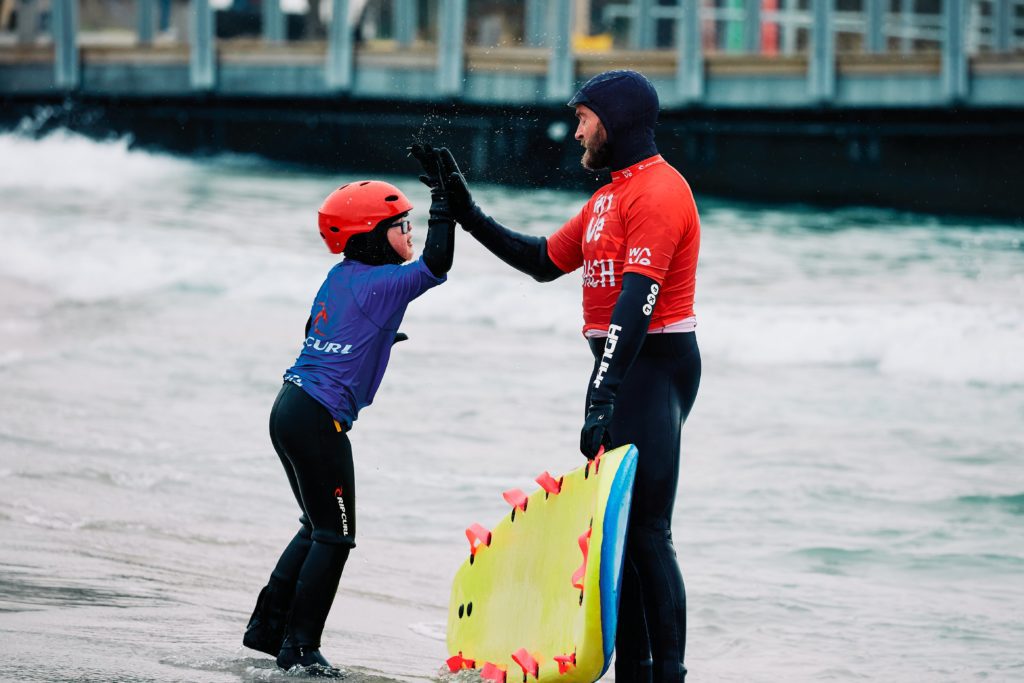 The term ‘Adaptive Surfing’ refers to those with additional needs or challenges, such as those with a disability, that require extra assistance, specialised equipment or an adapted surfing experience to match their abilities